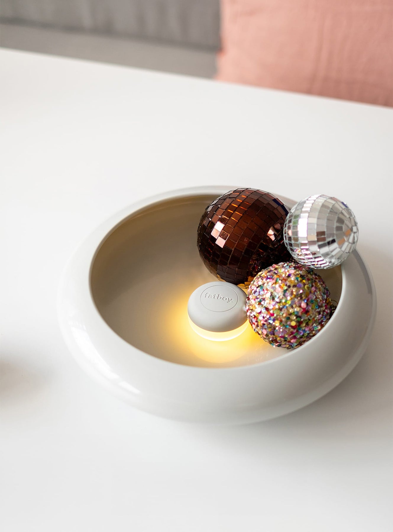 Discover the enchanting Oloha by Fatboy, a captivating fusion of a lamp and a mesmerizing work of art. This metallic bowl and magnetic lamp combination will leave you in awe as it effortlessly transforms any space into a charming ambiance. Whether gracing your dressing table, becoming a captivating centerpiece on your coffee table, or adorning your wall as a one-of-a-kind wall lamp, Oloha's multifaceted design will captivate your senses and ignite your creativity.